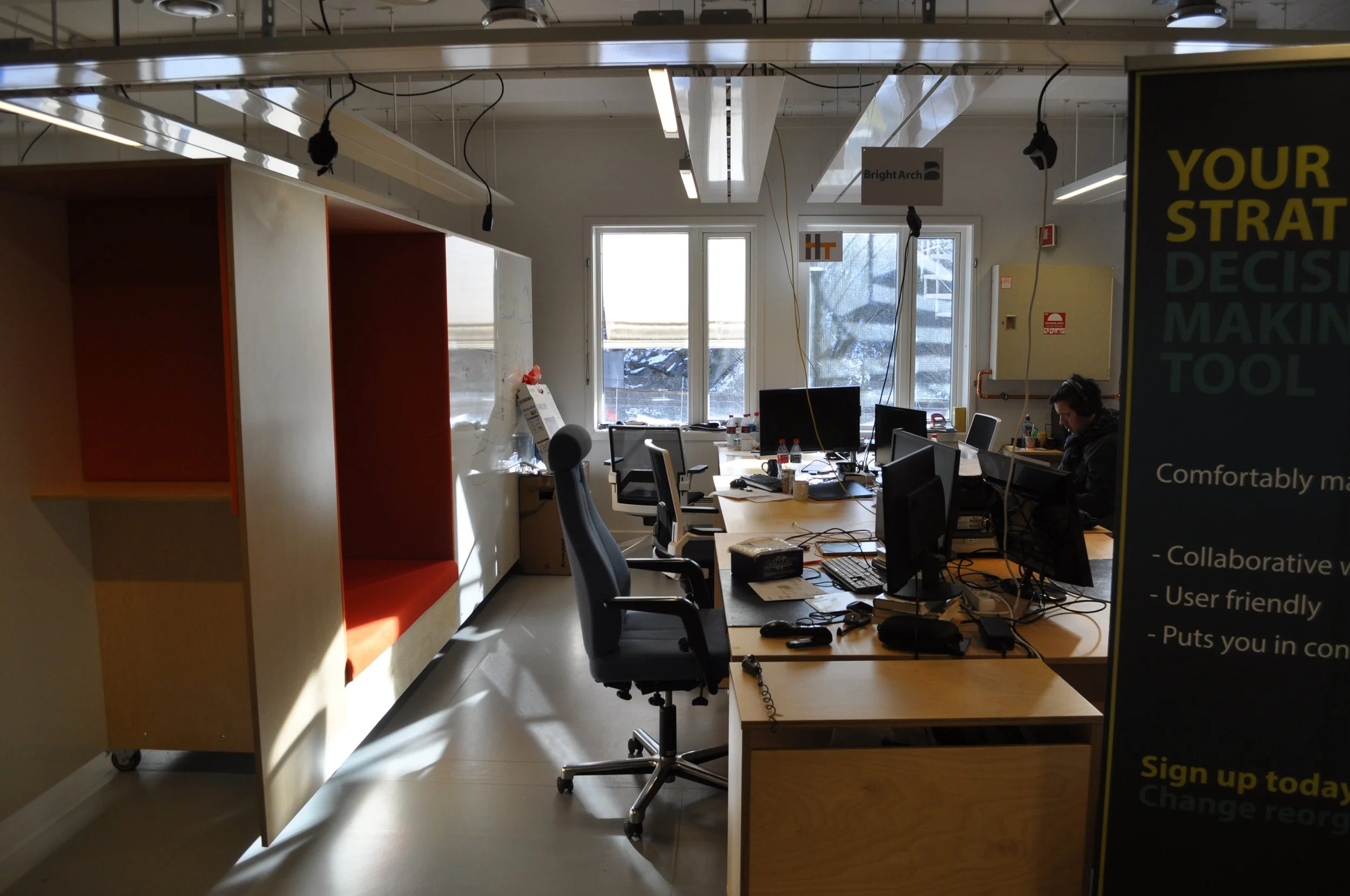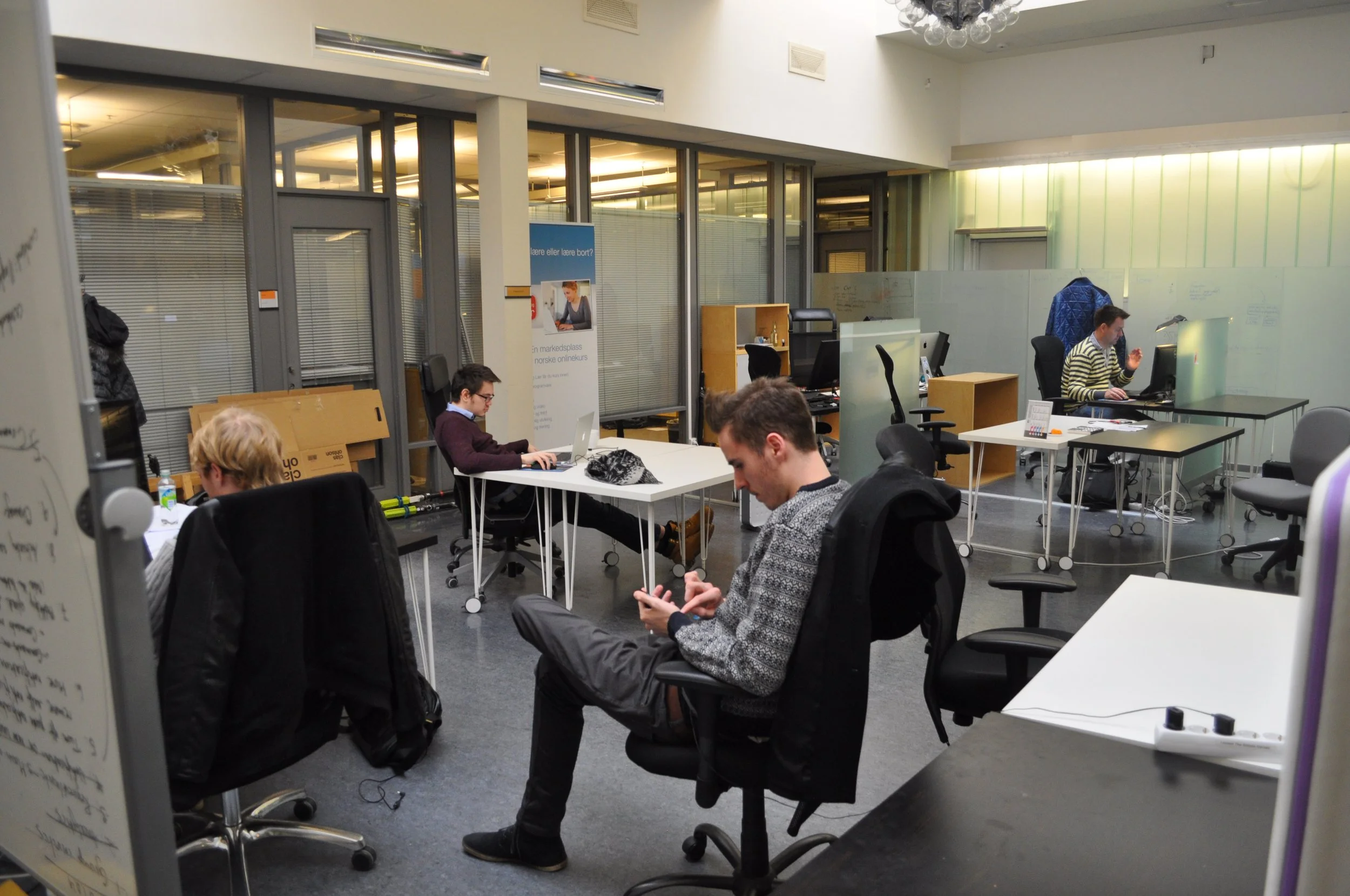 According to Oslo Business Region’s estimates, startup-related coworking may take up to as 40% of the employment rates in Oslo in near future, where the percentage is currently on 2. If freelance work are occupying more and more of the working society, so will the definition of what a workspace might be. While this new trend is emerging, another ancient tradition is endangered - namely serendipity, or incidental but favorable events at work; such as small talk over a cup of coffee, knowledge exchange, and room for unforeseen results and ideas at the workplace. If companies and corporations no longer hire competence and expertise in-house, but rather outsource it to freelancers; how will this production of beneficial coincidences at the workplace occur among knowledge workers? It is here coworking spaces emerges as an enduring necessity; in a society where everybody can work apart and every individual is a competitor, participants of coworking are working together, but independently, exploring notions of what a contemporary, yet professional community might be.